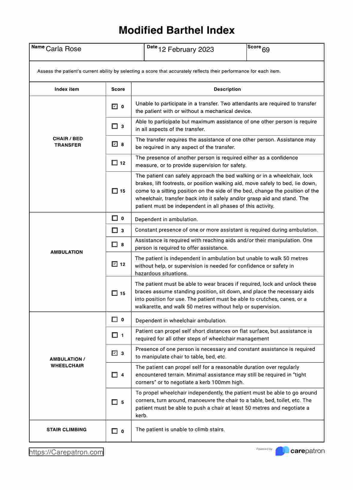 Modified Barthel Index & Example | Free PDF Download - Source www.carepatron.com